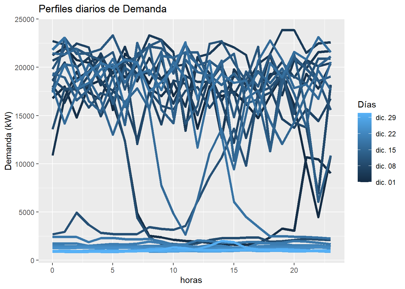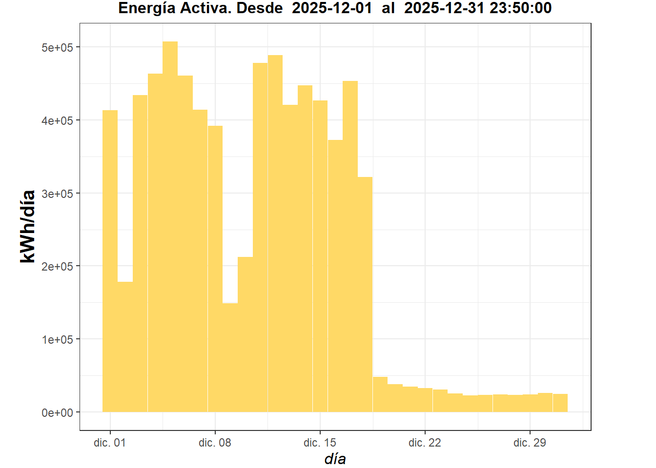 A partir del día 19 de diciembre hasta el 31, se observa la reducción en el consumo de energía, de ahí que tanto la demanda mínima, el factor de carga y el consumo promedio diario sean tan bajos comparados con los meses anteriores.